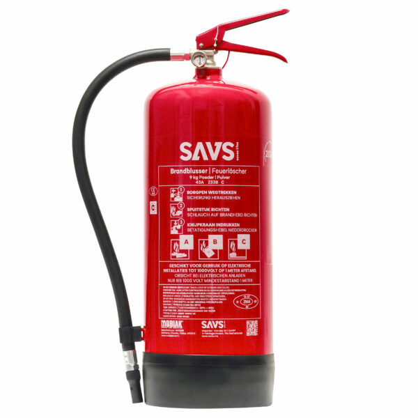 Elevate your safety with the SAVS 9kg ABC Fire Extinguisher. A trusted European brand, SAVS delivers versatility with its ABC classification for multiple fire types. The in-built pressure gauge and non-toxic agent ensure safety and eco-friendliness.